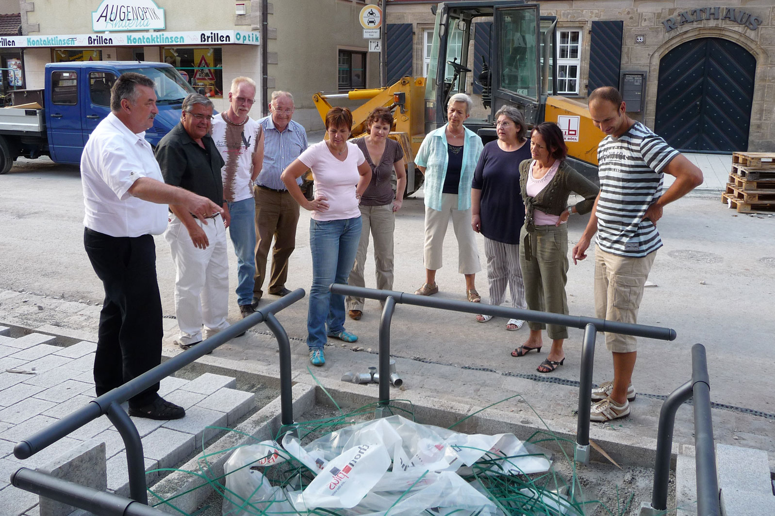 Der Hauptstraßenumbau stand im Mittelpunkt des Treffens der Feuchter CSU-Fraktion, und vor Ort überzeugten sich die CSU`ler vom Fortgang der Arbeiten. Die umgebaute Hauptstraße nimmt zusehends Konturen an, und die breiten Gehwege mit dem freundlichen, hellen Pflaster werden allgemein gelobt. Foto: Herbert Bauer „Mehr Grün, mehr Gehwege und mehr Chancen für die Feuchter Geschäfte – die Aufenthaltsqualität im Ortszentrum soll nachhaltig verbessert werden“ dies sind laut Bürgermeister Konrad Rupprecht die angestrebten Ziele, und dass dabei auch längst notwendige Erneuerungsarbeiten an unterirdischen Leitungen durchgeführt werden können, ist mehr als ein angenehmer Nebeneffekt. Insgesamt bleiben die Arbeiten im vorgesehen Zeitrahmen, und zahlreiche Zufahrts- und Parkmöglichkeiten sollen Geschäftsinhabern und Kunden gleichermaßen zufrieden stellen, damit sich Einbußen bzw. Unannehmlichkeiten während der Umbauphasen weitgehend in Grenzen halten. Einstimmig befürwortet die CSU-Fraktion den Erlass einer Verordnung zum Offenhalten von Verkaufsstellen, um den Feuchter Gewerbetreibenden die Durchführung des Baustellenfestes am Sonntag, dem 13. Juli zu ermöglichen und bittet die Bevölkerung um rege Teilnahme. Fraktionsvorsitzende Karin Reiwe appelliert in diesem Zusammenhang an die Mitbürgerinnen und -bürger, jene Geschäfte weiterhin zu stärken, die durch die Baumaßnahmen zeitweilig nicht direkt mit dem Pkw angefahren werden können, damit sich deren umbaubedingten Umsatzeinbußen in Grenzen halten.